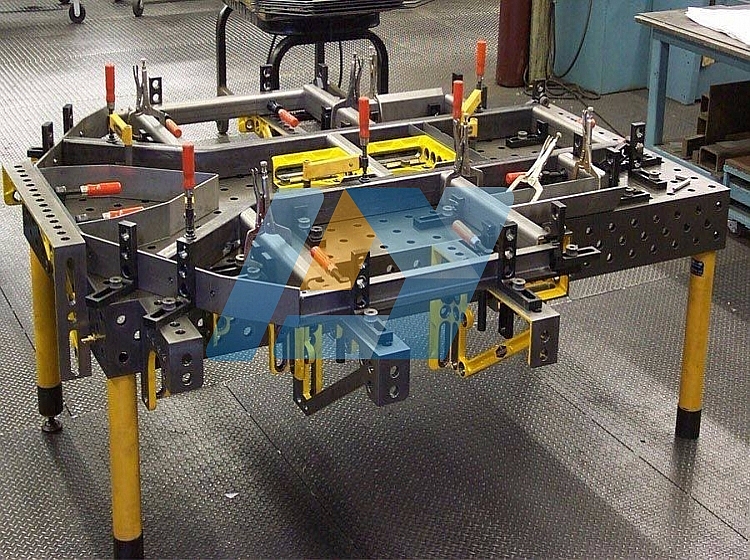 三維柔性焊接夾具的承載能力高,鋼性穩(wěn)定,它的五個(gè)面均加工有規(guī)則的孔,并刻有網(wǎng)線。焊接平臺(tái)可方便地延伸和擴(kuò)展,組合。經(jīng)擴(kuò)展的標(biāo)準(zhǔn)臺(tái)面可模塊化的定位和夾緊直接連接在一起。在安裝、調(diào)整和定位工件過(guò)程將三維柔性組合焊接夾具的通用功能展示優(yōu)良,尤其在了大型工件方面的應(yīng)用上。
