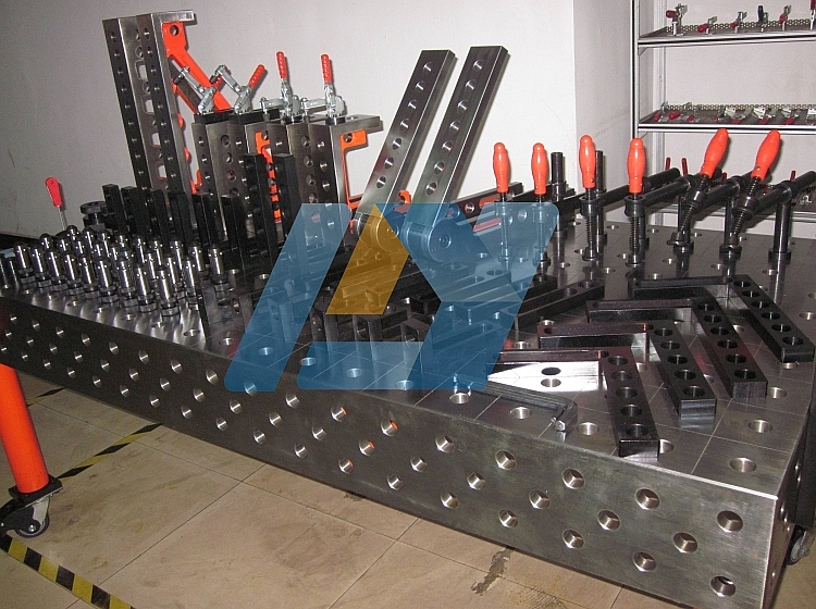 三維柔性工裝平臺(tái)是根據(jù)機(jī)械加工中焊接夾具的原理構(gòu)思而成,通過平臺(tái)基礎(chǔ)班與槽型孔附件,附件與附件相互搭配連接,能夠形成一套焊接組合工裝。
