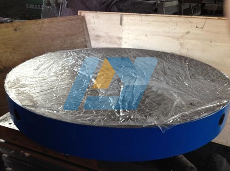 材料為鑄鐵HT20-40,工作面硬度為HB770-240。經(jīng)過(guò)兩次處理(人工退火600°-700°和自然時(shí)效2-8年),使該產(chǎn)品的精度穩(wěn)定,不易磨損性能好。圓形平板(平臺(tái))可用涂色法檢驗(yàn)零件平面度,具有準(zhǔn)確、直觀、方便的優(yōu)點(diǎn)。